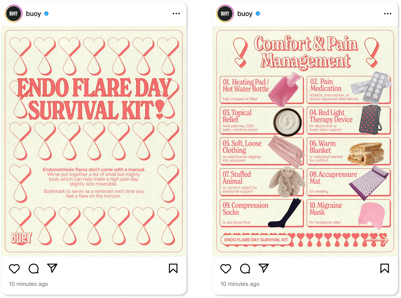 Each month Studio highlighted various Chronic Illnesses to both spread awareness, and create digital moments for community engagement. This content positioned Buoy in real, everyday routines for managing chronic illness. As a result Studio created content that amplified lived reality over generic marketing noise.