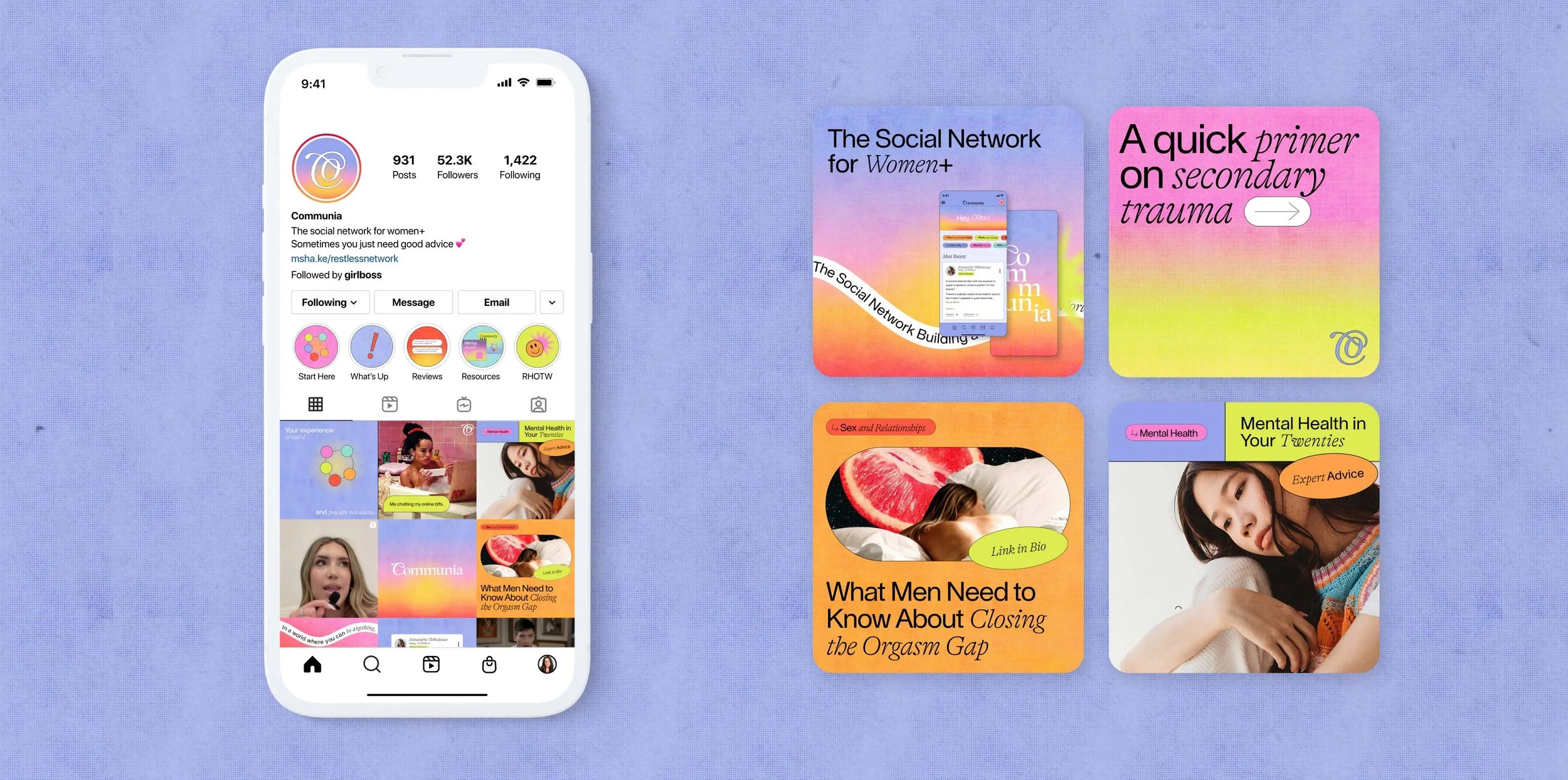 The Communia brand needed to establish an identity that represented its new name (previously Restless Network) and expressed their mission and offering in a fresh new way. ilovecreatives Studio partnered with the Communia team to create the dynamic and fresh brand identity that emcompasses shared values of unfiltered self expression, authenticity and empathy.